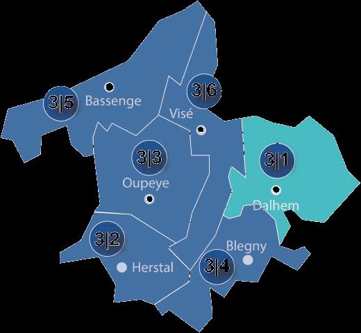 Commune de Dalhem: 7649 habitants (2022) – Warsage: 1806 habitants – Berneau: 905 habitants – Aubin: 884 habitants – Mortroux: 556 habitants – Ferneur: 536 habitants – Dalhem: 2077 habitants – Bombaye: 885 habitants.