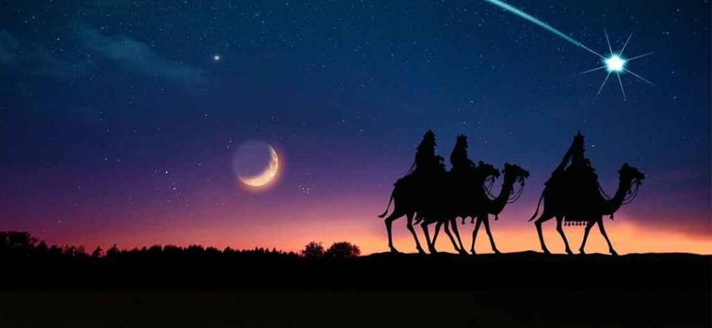 Suivre l’étoile qui mène jusqu’à Dieu. Suivre l’étoile un signe pour nos yeux. Suivre l’étoile, Suivre.
