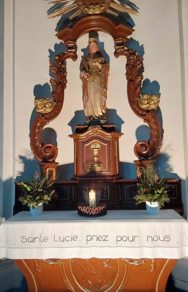 MORTROUX – Dimanche 14, 11h, fête de Ste Lucie : épx Corman-Biemar, Hubert Jeukens et fam. Jeukens-Guillaume, épx Johnen-Schobben et Charles et épx Pierre-Dejasse et David, fam. Crauwels-Lonneux et Delhez-Cupers, épx Jean et Simone Comblain-Debougnoux