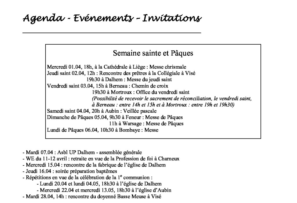 - Dimanche 22.03, 11h, à Mortroux: messe en l’honneur de St Joseph