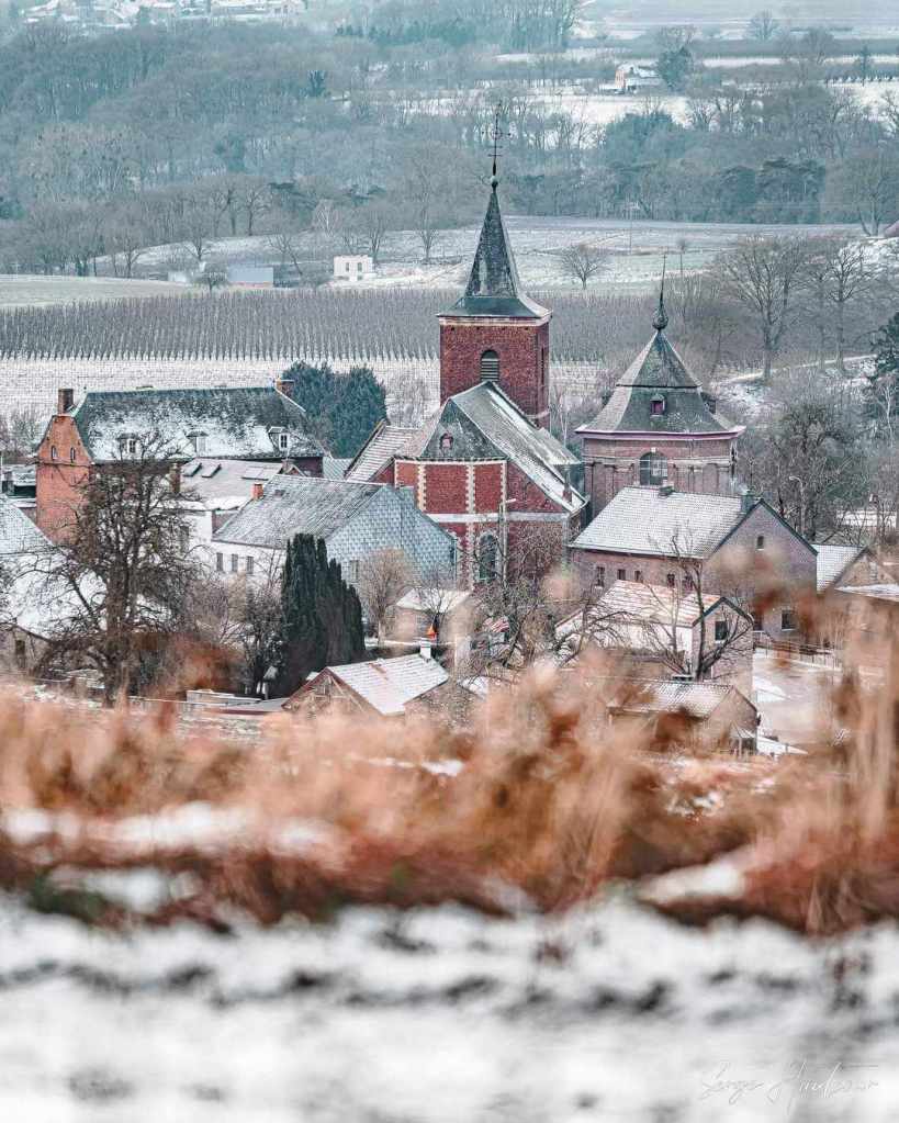 Un chœur fort ancien daté de 1623 fut restauré en 1649. En 1694, l’aspect de l’église était resté identique. Les chatelains (Gulpen) disposaient d’un caveau dans l’église. Un nouveau clocher fut érigé au début de 18ème siècle (1706). En 1710, les chatelains (Hoen) font construire un caveau à proximité de l’église. A la mort de leur fils unique en 1714, ils font construire la chapelle dans laquelle ils reposent tous les trois.