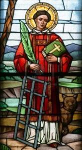 Diacre d’origine espagnol du pape Sixte II. Il gérait les fonds de l’Eglise destinés aux pauvres. Il meurt en martyr en 258 PCN sur un grill quelques jours après la décapitation du pape ordonnée par l’empereur Valérien. Ce dernier voulait récupérer le trésor de l’Eglise que gérait Laurent. Il le distribua aux pauvres et signala à l’empereur que ces derniers étaient l’unique trésor de l’Eglise. La légende raconte que peu avant de mourir il aurait signalé à ces tortionnaires qu’ils le retournent car il était assez cuit coté braises.